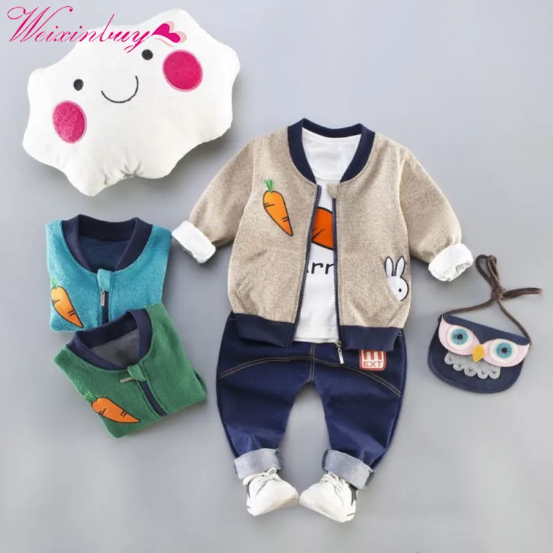 Limited Price for 3PCS Baby Boys Cartoon Jacket+t-shirt+ Jeans Set For Clothes Autumn Long Sleeve Cartoon Zipper Baby