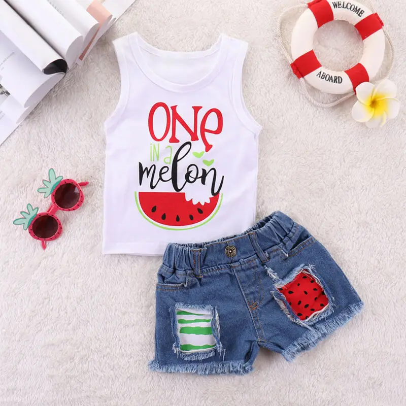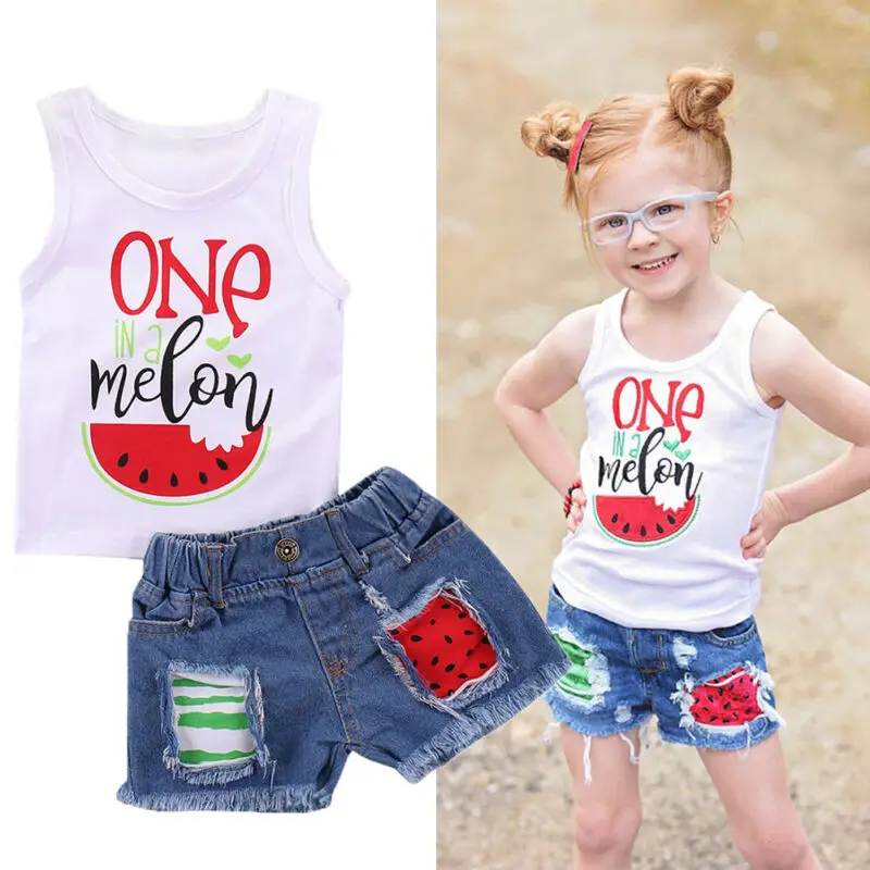 Good Price for Newborn Toddlers Baby Girl Watermelon Print Clothes Sleeveless T-shirt Top+Denim Jeans Shorts Pants