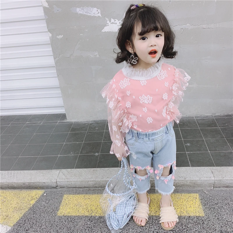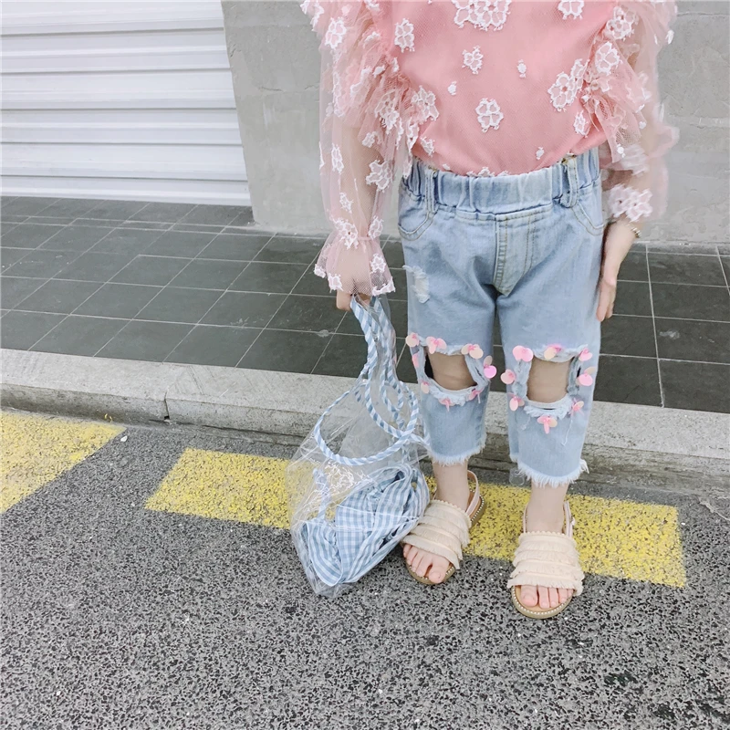 Special Chance for Spring Summer hole girls jeans baby denim trousers kids pants children bottoms ripped pink sequin p