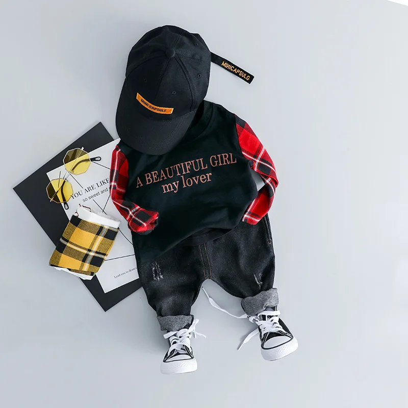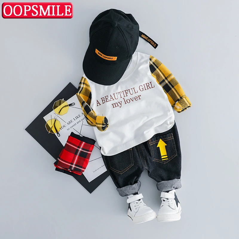 Good Price for Toddler Baby Boy Clothes Sets Spring Autumn Casual Patchwork Outwear Sets T-shirt Top+Jeans Outfits